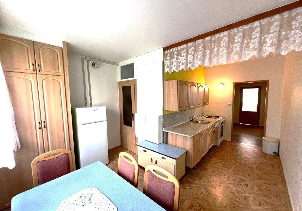 Byt o dispozici 4+1 s lodžií situovaný ve 3. patře bytového domu v klidné, zastavěné části města s kompletním provozním zařízením. Bytová jednotka 4+1+L o celkové výměře podlahové plochy bytu s lodžií 82,43 m2 s externím příslušenstvím (skladovací komorou) 83,66 m2, zbudovaný v roce 1968, situovaný ve 4.NP (3. patro) budovy bytového domu s celkem 23 bytovými jednotkami, výtahem a vlastní skladovací komorou. K bytu náleží možnost užívání všech společných prostor (kolárna + technická místnost) a přístupového prostranství v domě a užívání venkovního veřejného prostranství s parkovací plochou navazující na bytový dům. Orientace oken v bytu na J,Z,S, ložnice+obývací místnost s lodžií JZ, kuchyně + ložnice SV, 1x ložniceSZ). V průběhu let 200723 byla provedena částečná modernizace bytu: instalace sprchového koutu včetně výměny instalací, výměna oken (S,Z), kompletní rekonstrukce lodžie a výměna společných rozvodů. Byt je připraven k okamžitému předání a užívání ihned po převodu nemovitosti, bez jakéhokoli omezení vlastnických práv. Bytový dům, ve kterém se byt nachází je osmipodlažní objekt panelové konstrukce, situovaný v lokalitě se zástavbou bytových domů a rodinných domů v klidné části malého města Kdyně s dostupností základních služeb, občanskou vybaveností a kompletní infrastrukturou, cca 10 km od okresního města Domažlice s kompletní vybaveností. Třída budovy ENB:„C“. Byt s kompletním provozním příslušenstvím a původním vybavením je využitelný k trvalému rodinnému bydlení či komerčnímu pronájmu dle představ nového vlastníka. Dispozice bytu: vstup, předsíň se šatnou, kuchyně s jídelnou, obytná místnost s lodžií, 3x ložnice, koupelna (sprchový kout, umyvadlo), WC. Vybavení bytu: kuchyňská linka, sporák, lednice, koupelnové vybavení, vestavný šatní prostor, komora, zařizovací předměty, komplet původní nábytek, osvětlovací tělesa, rozvody TV/tel./internet. Vytápění: dálkové centrální včetně ohřevu teplé vody. Celková plocha bytu s příslušenstvím: 83,66 m2 (podlahová plocha bytu 77,33 m2, lodžie 5,10 m2, ext. komora 1,23 m2).
