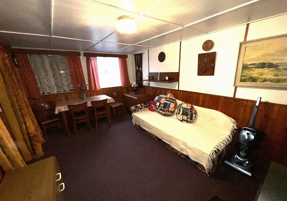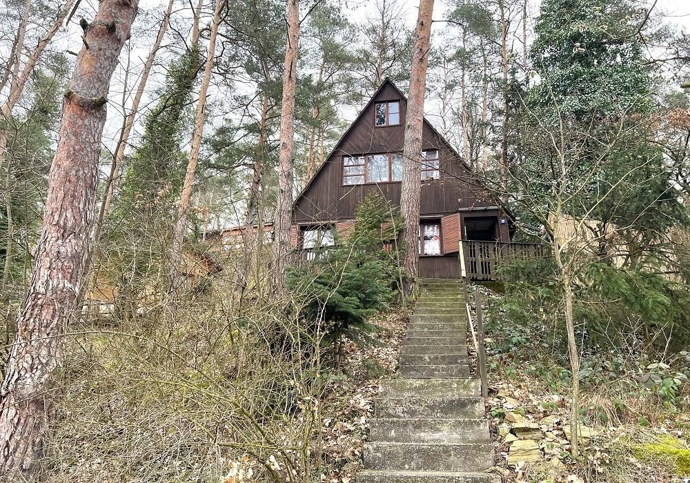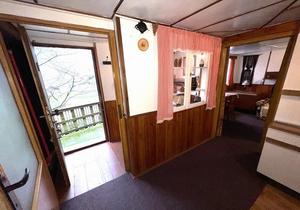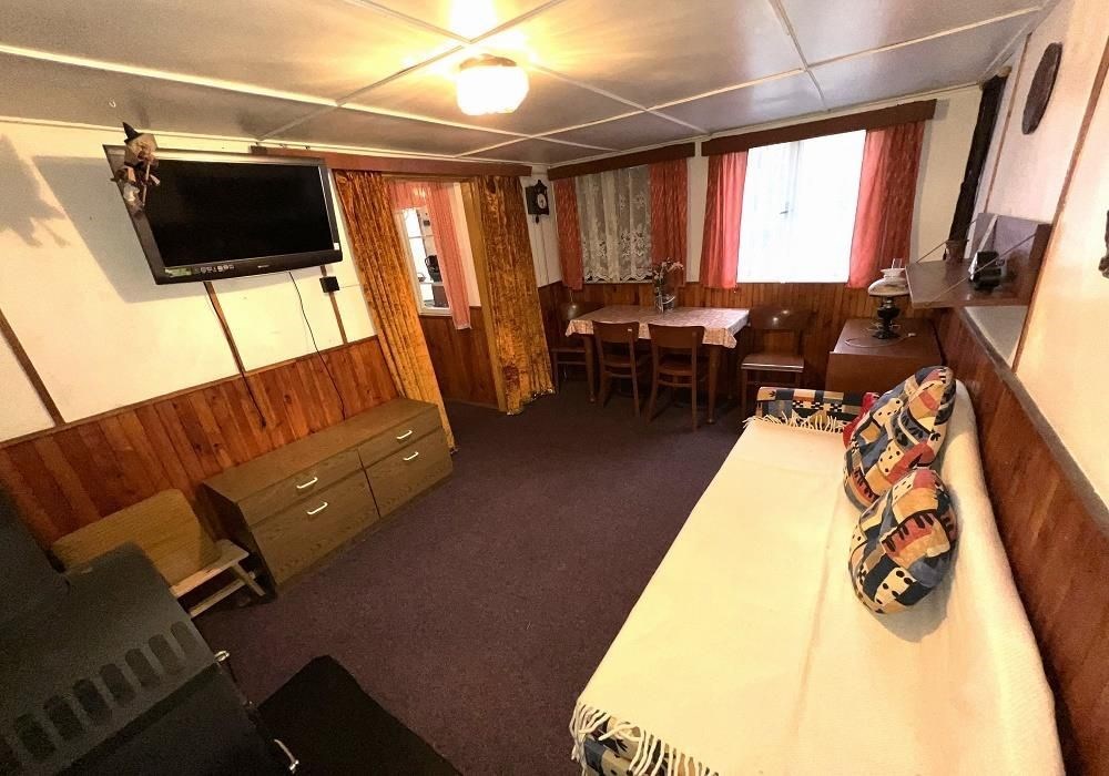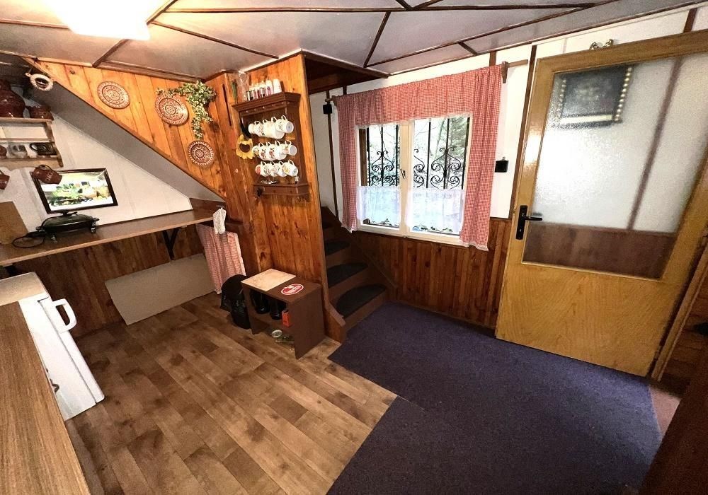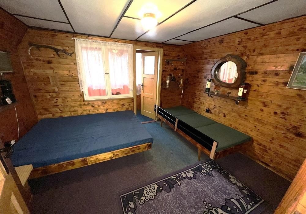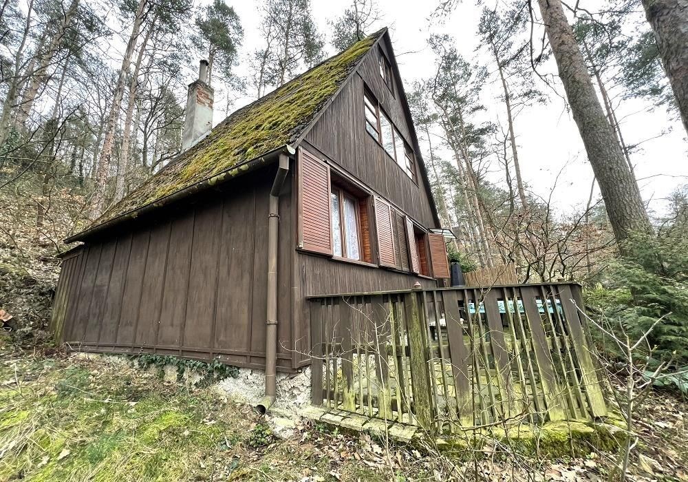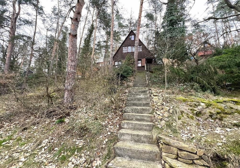 Rekreační chata s terasou o dispozici užitného obytného prostoru 3+1 (obytná místnost, 2x ložnice + kuchyně) s kompletním příslušenstvím a provozním vybavením v rekreační chatové osadě Podhájí u Horšovského Týna. K chatě náleží možnost užívání okolního, navazujícího společného pozemku spolu s vlastními vedlejšími stavbami (kolna, sklad paliva, suché WC). Chata byla zbudována v roce 1968, stále užívána k sezónnímu rekreačnímu bydlení, řádně udržována a spravována. V letech 200210 byla chata částečně modernizována a provozně vybavena, doposud užívána k individuální rodinné rekreaci. Jedná se o samostatnou přízemní stavbu rekreačního objektu dřevěné konstrukce s využitým obytným podkrovím, kompletním provozním vybavením, nábytkem a zařizovacími předměty, připravený k okamžitému předání a užívání. Nemovitost je situována v přírodní lokalitě rekreační osady obklopené vzrostlým borovým porostem na okraji rekreační zástavby s zavazující příjezdovou cestou, veřejným rekreačním prostranstvím s nedalekou vodní plochou ke koupání a rybolovu. Příjezd k objektu po zpevněné cestě s možností parkování os. automobilu na parkovacím stání cca 10m od chaty. Stavba rekreační chaty je postavena na státním pozemku (Lesy České republiky) bez vlastního navazujícího pozemku zahrady s možností volného užívání vymezené části pozemku navazujícího na objekt chaty. Nemovitost je vhodná a využitelná k rodinné rekreaci (koupání, sport, cykloturistika, sportovní rybolov) v přírodním lesním prostředí, cca 2 km od města Horšovský Týn se základními službami a infrastrukturou, cca 8 km od okresního města Domažlice s kompletní vybaveností. Předností nabízené nemovitosti je velikost a vnitřní dispozice prostor, vybavenost chaty, kompletní zařízení nábytkem, lokace v přírodní lokalitě rekreační osady u města Horšovský Týn s dostupností služeb a možnost okamžitého užívání objektu. Dispozice objektu: Přízemí vstup, zádveří, kuchyně, společenská místnost s krbovými kamny a sezením, úložný prostor, schodiště, venkovní terasa. Podkroví schodiště, 2x ložnice, úložný prostor, krytý balkón. Objekt přístupný z veřejné cesty a násl. venkovním přírodním schodištěm, elektřina 16A (220/380V), externí zdroj užitkové vody ze společné studny, bez odkanalizování objektu, vytápění lokální na tuhá paliva (1x krbová kamna). Zastavěná plocha chaty: 30 m2, užitná obytná plocha: cca 54 m2.