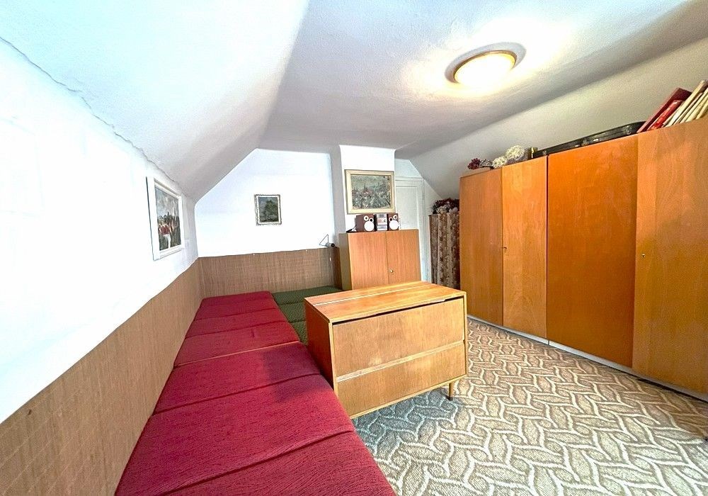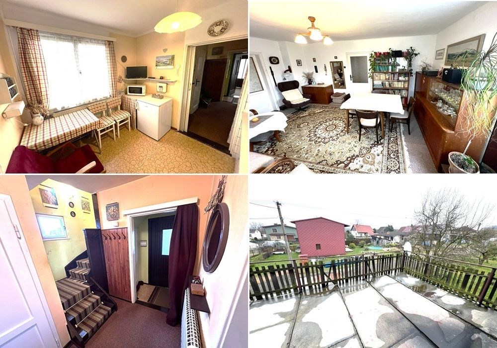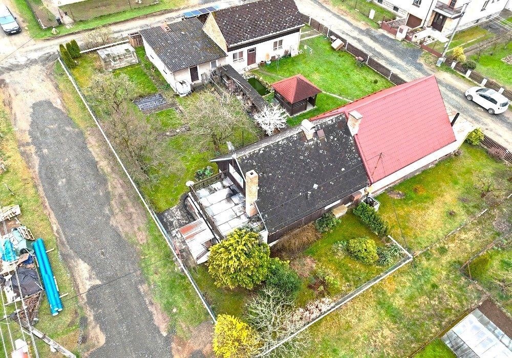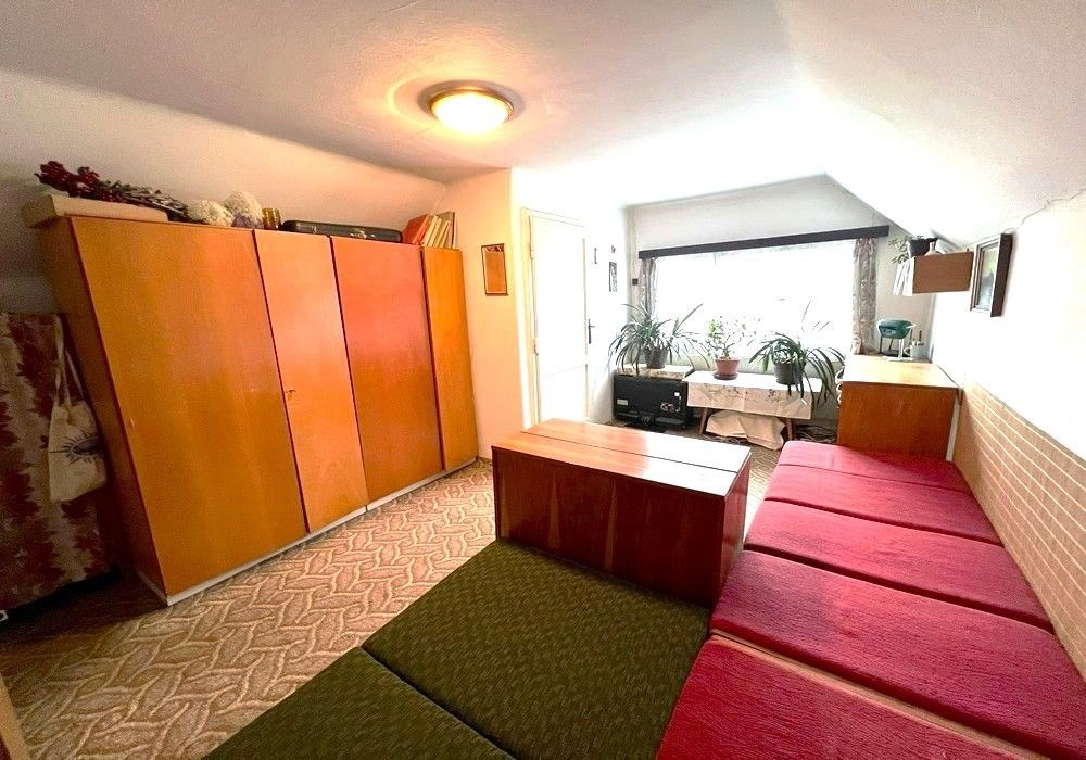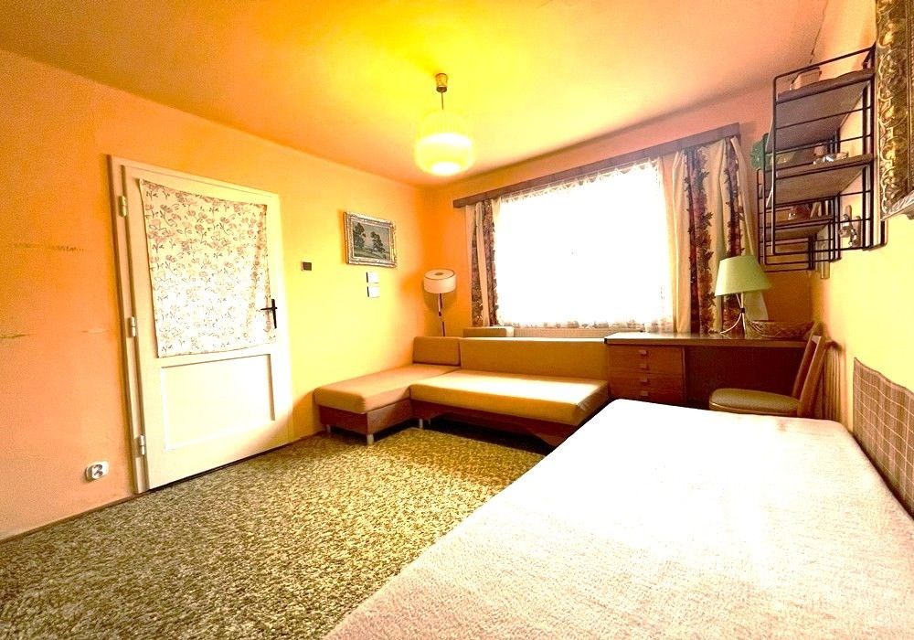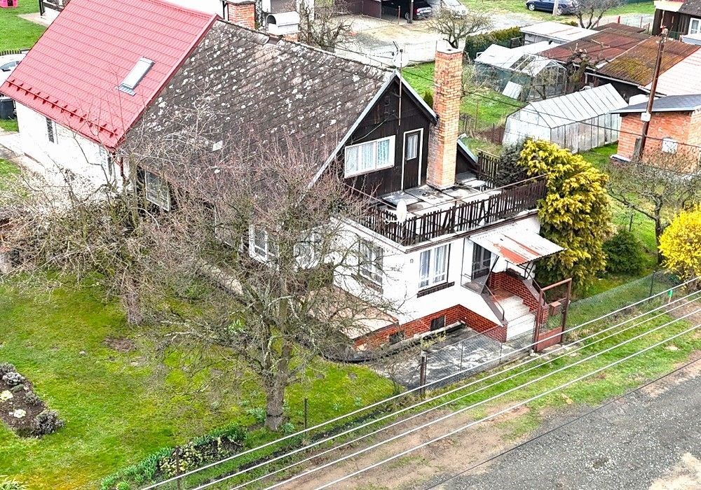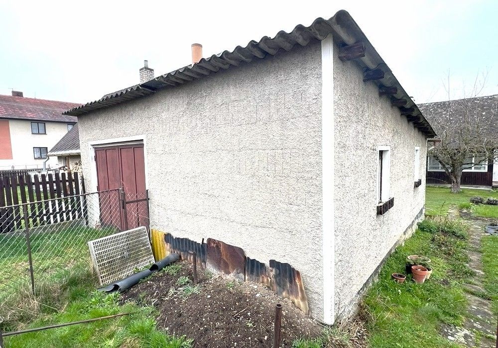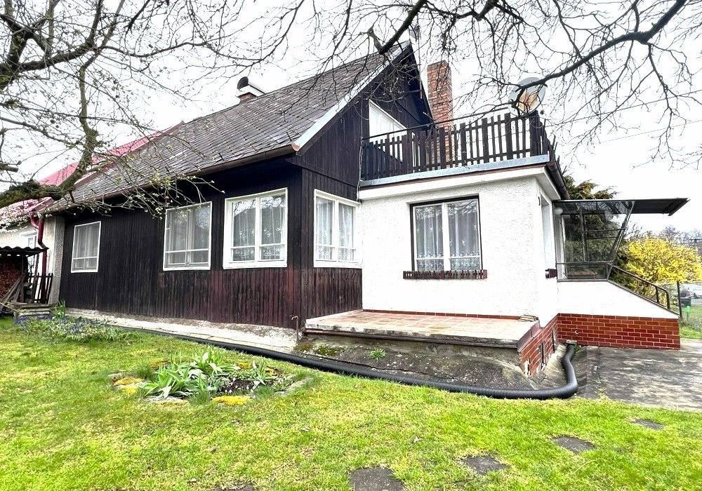 Rodinný dům s dispozicí obytných prostor 3+1 (3x místnost + kuchyně) s příslušenstvím ve dvou nadzemních podlažích s navazující zahradou s garáží, drobnými stavbami a venkovními úpravami o celkové výměře pozemků 558 m2 v klidné, okrajové části obce. Přízemní, částečně podsklepený RD dřevěné sendvičové konstrukce s vnitřním vyzděním, tzv. „finský domek“ s původním vybavením a kompletním provozním zařízením s částečně využitými podkrovními prostorami k obytným účelům, stavebně navazující na sousední rodinný dům stejného charakteru. Objekt rodinného domu z roku 1950 je v původním technickém stavu s původními konstrukčními prvky, po částečné modernizaci (přístavba verandy se sklepem v r. 1984), doposud užíván k sezónnímu bydlení, s možností okamžitého užívání a bydlení nebo provedení rekonstrukce a modernizace objektu dle představ nového vlastníka. Třída ENB: „G“. Nezastavěnou část pozemku tvoří navazující oplocená zahrada s travním porostem, vzrostlými ovocnými a okrasnými dřevinami s klidovým zázemím, předzahrádkou, samostatně stojící garáží s dílnou, zpevněnými venkovními úpravami, skleníkem a přístřešky. Pozemek je dostupný samostatným vstupem a vjezdem z veřejné komunikace, situován v klidné, okrajové části obce s navazující zástavbou rodinných domů k trvalému bydlení v mírně svažitém terénu s orientací pozemkuzahrady na jih a orientací obytných prostor budovy RD na jih a sever. Rodinný dům je připraven k okamžitému převodu a následnému předání, bez jakéhokoli omezení vlastnických práv. Předností nabízených nemovitostí je lokace v klidné okrajové části obce, dispozice obytných prostor, velikost objektu RD s možností rozšíření obytných prostor v podkroví, rozloha pozemku, napojení na inženýrské sítě, dostupnost základních služeb, infrastruktury a vybavenosti v rámci obce Poběžovice. Dispozice domu: přízemí vstup, veranda, chodba, schodiště, kuchyně, obývací místnost, ložnice, WC, koupelna, komora, podkroví schodiště, chodba, ložnice, terasa, volný půdní prostor. Nemovitost dostupná z veřejné zpevněné komunikace, napojeno na veřejnou splaškovou kanalizaci, rozvod elektřiny (220/380V), společný zdroj vody a telekomunikační rozvody s možností napojení na veřejný vodovod a rozvod plynu u hranice pozemku. Vytápění: centrální elektrické + centrální palivové. Zastavěná plocha RD: 68 m2, obytná plocha RD: cca 97 m2, zahrada: cca 433 m2, plocha pozemků celkem: 558 m2