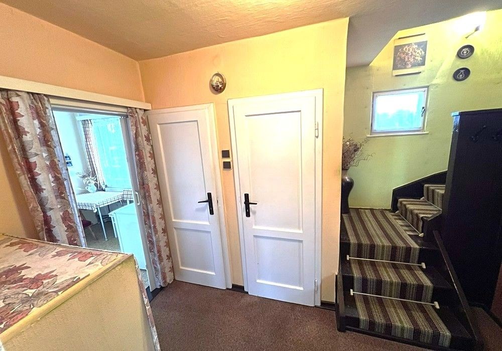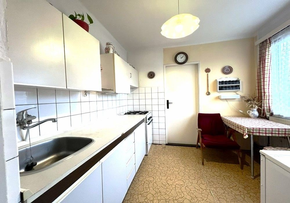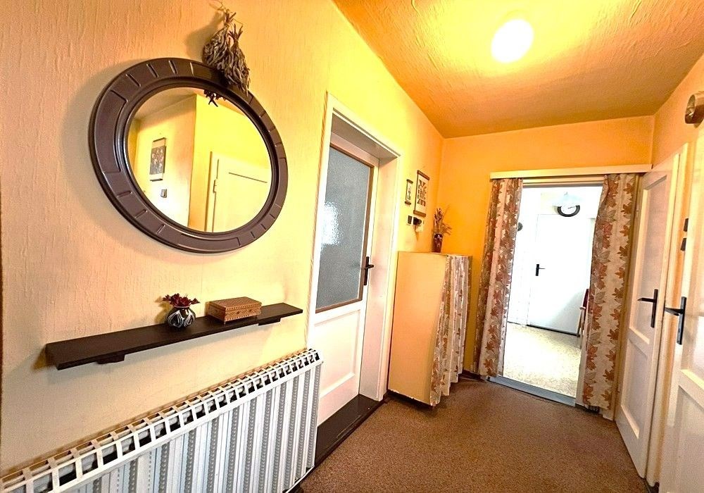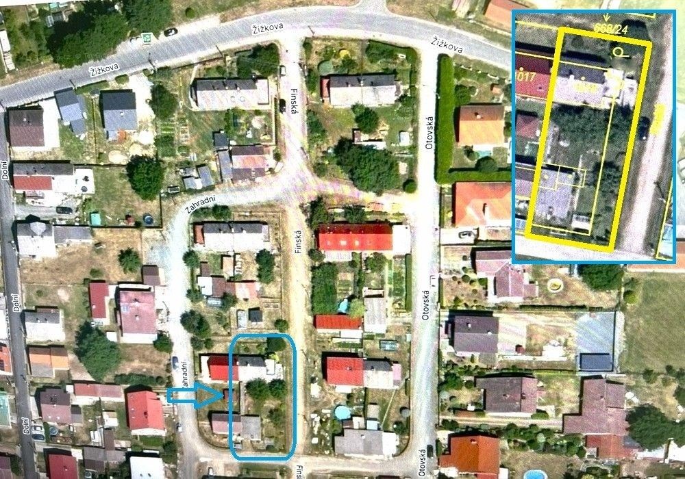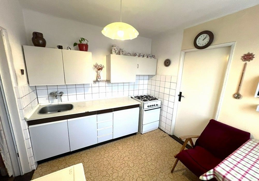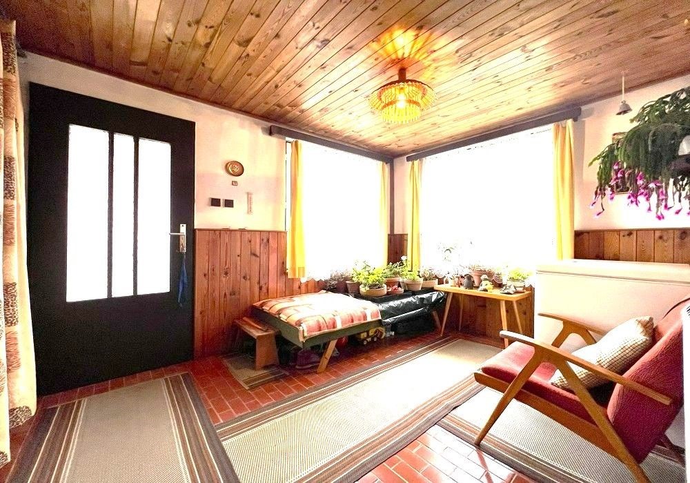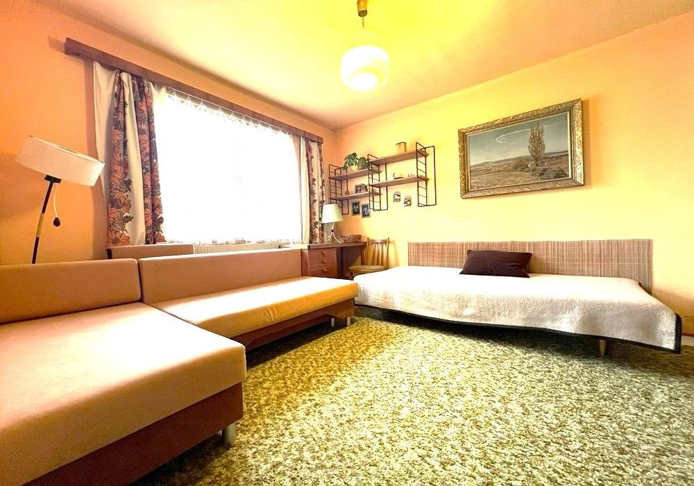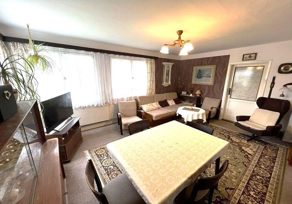 Rodinný dům s dispozicí obytných prostor 3+1 (3x místnost + kuchyně) s příslušenstvím ve dvou nadzemních podlažích s navazující zahradou s garáží, drobnými stavbami a venkovními úpravami o celkové výměře pozemků 558 m2 v klidné, okrajové části obce. Přízemní, částečně podsklepený RD dřevěné sendvičové konstrukce s vnitřním vyzděním, tzv. „finský domek“ s původním vybavením a kompletním provozním zařízením s částečně využitými podkrovními prostorami k obytným účelům, stavebně navazující na sousední rodinný dům stejného charakteru. Objekt rodinného domu z roku 1950 je v původním technickém stavu s původními konstrukčními prvky, po částečné modernizaci (přístavba verandy se sklepem v r. 1984), doposud užíván k sezónnímu bydlení, s možností okamžitého užívání a bydlení nebo provedení rekonstrukce a modernizace objektu dle představ nového vlastníka. Třída ENB: „G“. Nezastavěnou část pozemku tvoří navazující oplocená zahrada s travním porostem, vzrostlými ovocnými a okrasnými dřevinami s klidovým zázemím, předzahrádkou, samostatně stojící garáží s dílnou, zpevněnými venkovními úpravami, skleníkem a přístřešky. Pozemek je dostupný samostatným vstupem a vjezdem z veřejné komunikace, situován v klidné, okrajové části obce s navazující zástavbou rodinných domů k trvalému bydlení v mírně svažitém terénu s orientací pozemkuzahrady na jih a orientací obytných prostor budovy RD na jih a sever. Rodinný dům je připraven k okamžitému převodu a následnému předání, bez jakéhokoli omezení vlastnických práv. Předností nabízených nemovitostí je lokace v klidné okrajové části obce, dispozice obytných prostor, velikost objektu RD s možností rozšíření obytných prostor v podkroví, rozloha pozemku, napojení na inženýrské sítě, dostupnost základních služeb, infrastruktury a vybavenosti v rámci obce Poběžovice. Dispozice domu: přízemí vstup, veranda, chodba, schodiště, kuchyně, obývací místnost, ložnice, WC, koupelna, komora, podkroví schodiště, chodba, ložnice, terasa, volný půdní prostor. Nemovitost dostupná z veřejné zpevněné komunikace, napojeno na veřejnou splaškovou kanalizaci, rozvod elektřiny (220/380V), společný zdroj vody a telekomunikační rozvody s možností napojení na veřejný vodovod a rozvod plynu u hranice pozemku. Vytápění: centrální elektrické + centrální palivové. Zastavěná plocha RD: 68 m2, obytná plocha RD: cca 97 m2, zahrada: cca 433 m2, plocha pozemků celkem: 558 m2