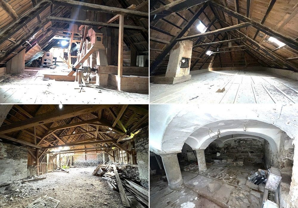 Samostatně stojící objekt původního mlýnu s navazujícími hospodářskými stavbami (stodola, sklad, stáje), manipulačními prostorami, dvorem, zahradou, navazujícími externími zemědělskými pozemky a pozemky původního náhonu ke mlýnu. Jedná se o zděný, dvoupodlažní, částečně podsklepený objekt mlýnu s původními provozními prostorami (mlýnice, strojovna, sklady, stáj…) a původními prostorami k bydlení s kompletně využitým podkrovím. Většinu vnitřních prostor tvoří původní příslušenství a technické vybavení mlýnu se zachovalými původními mechanismy mlýnského vybavení. Objekt jehož původní stáří je min. 250 let (jedná se o jeden z nejstarších objektů mlýnu na okrese Domažlice) není pod jakoukoli historickou ochranou, byl naposledy užíván v r. 1990. Nyní již není soubor objektů dlouhodobě využíván k původnímu účelu ani k bydlení, částečně udržován, v původním technickém stavu, připraven k provedení kompletní rekonstrukce a záchraně objektu dle představ nového vlastníka. Třída ENB:„G“. K zajištění obyvatelnosti a prodloužení životnosti budovy a vedlejších staveb je nutno provést kompletní rekonstrukci a adaptaci s možností zachování stávající mohutné konstrukce stavby včetně krovových konstrukcí. Nabízené nemovitosti jsou jako jeden funkční celek vhodné a využitelné k trvalému bydlení (objekt je evidována jako rodinný dům) s využitím původního historického stavení a možností obnovy původní funkce mlýna, případné výstavby nového objektu k bydlení na vlastním navazující stavebním pozemku a možností chovu hospodářských zvířat na přilehlých zemědělských pozemcích. Soubor nemovitostí je situován v malé klidné obci Svržno s dobrou dopravní dostupností se základními služby a infrastrukturou dostupnými ve 3 km vzdálené obci Hostouň, nebo 5 km v obci Bělá nad Radbuzou. Předností nabízených nemovitosti je lokace nemovitosti v malé klidné obci s navazujícím regionálním střediskem k rekreačnímu chovu koní, zachované vnitřní provozní mlýnské vybavení a existence historických konstrukčních prvků objektu, dostupnost souboru objektů a existence navazujících zemědělských pozemků.