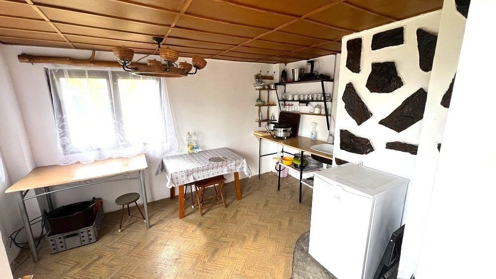 Pozemek se zahradní chatkou k rekreačnímu sezónnímu využití v klidné, okrajové části města o celkové výměře 458 m2 (zahrada + stavební pozemek). Jedná se o zahradu se samostatně stojící stavbou rekreační chaty, pergolou s krytým sezením, kolnou, studnou a skleníkem, provozním příslušenstvím a zpevněnými venkovními úpravami. Stavba chaty o dispozici 2KK sestává ze vstupu, obytného prostoru s kuchyňským koutem a zázemím s instalací na krbová kamna k lokálnímu vytápění, schodiště a podkrovních prostor (ložnice) se základním provozním vybavením a příslušenstvím. Chatka je ihned obyvatelná, provozně vybavena, připravena k předání a okamžitému užívání ihned po převodu nemovitostí. Navazující oplocená zahrada s uvedenými vedlejšími stavbami, zpevněnými venkovními úpravami, okrasnými a ovocnými vzrostlými dřevinami a udržovaným travním porostem je situována v mírně svažitém terénu s orientací pozemku na jihovýchod s výhledem do otevřené krajiny. Pozemek je kompletně oplocen, dostupný z veřejné zpevněné cesty s asfaltovým povrchem a z veřejného parkovacího prostranství s přístupovou brankou, navazuje na sousední pozemky jiných vlastníků s okolní rekreační zástavbou stejného charakteru, situován v klidné, okrajové lokalitě v severozápadní části malého města Kdyně (okraj zástavby rekreačních chat a zahrad). Zahrada s chatkou jsou vhodné a využitelné k sezónní rodinné rekreaci v klidné okrajové části malého města Kdyně s dostupností kompletních služeb, veřejné infrastruktury a kompletní vybaveností malého města. Dostupnost pozemku z veřejné zpevněné cesty, napojeno na veřejný společný rozvod elektřiny 220/380V, vytápění lokální na tuhá paliva, vlastní zdroj vody (vrtaná studna), odkanalizování do povrchového trativodu. Zastavěná plocha (chata): 17 m2, zahrada: 441 m2, pozemky celkem: 458 m2.
